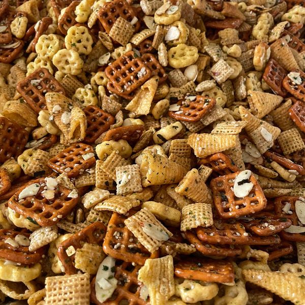 Hawaiian Furikake Chex Mix is a popular snack in Hawaii and it's the crunchiest, tastiest Chex Mix you'll ever have. It's seasoned with delicious nori furikake (white and black sesame seeds and dried seaweed) and a "secret sauce"! Making this Chex Mix is a labor of love as I spend a few hours baking it low and slow for the best possible crunch! There are lots of recipes out there but mine's the best! This recipe amount makes a "PARTY- SIZE" tray which fills a 2.5 gallon storage bag. If desired, I can divide the Chex Mix up into 8, 10 oz. gift bags for you! This is great to take to large parties or give away as gifts.