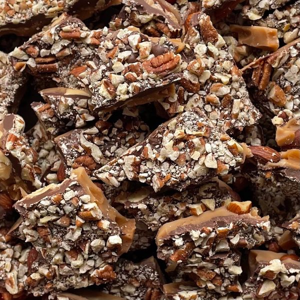 I confess! I used to sift through my kids Halloween candy and pick out all the Almond Joys for myself. This toffee is the best of both worlds: It's my classic milk chocolate topped with a crazy amount of toasted coconut. One order yields a 2 lb. box. If desired, I can divide your toffee into 4, 8oz. small gift boxes free of charge!